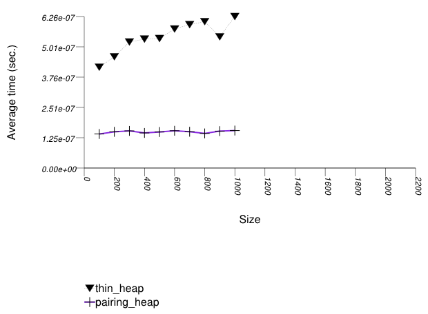 As the table shows, the "least constrained" underlying data structures are binary heaps and pairing heaps. Consequently, it is not surprising that they perform best in terms of amortized constants.